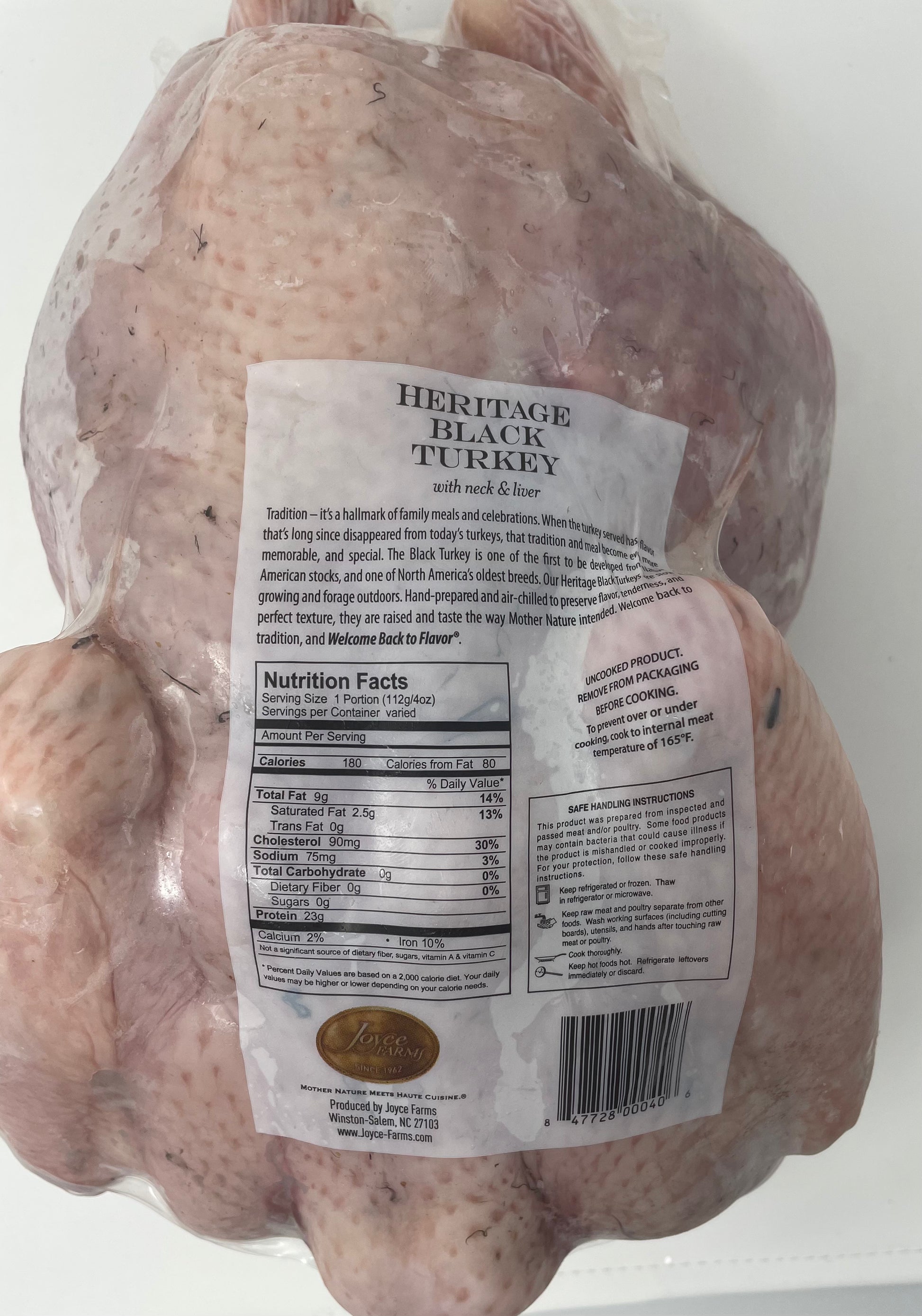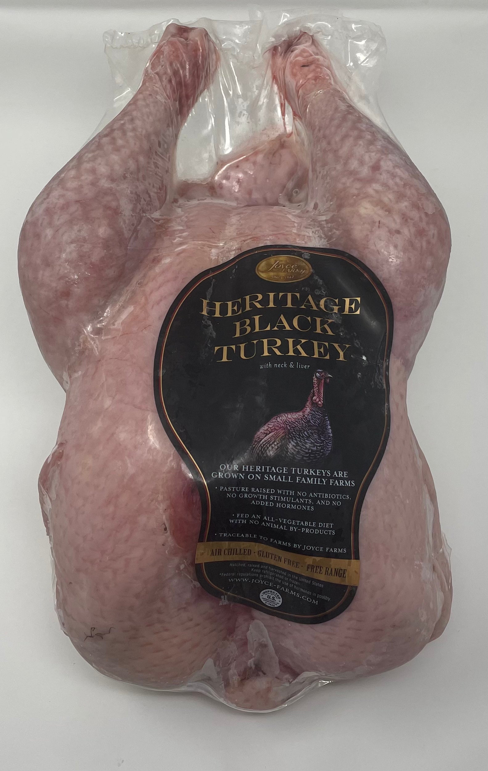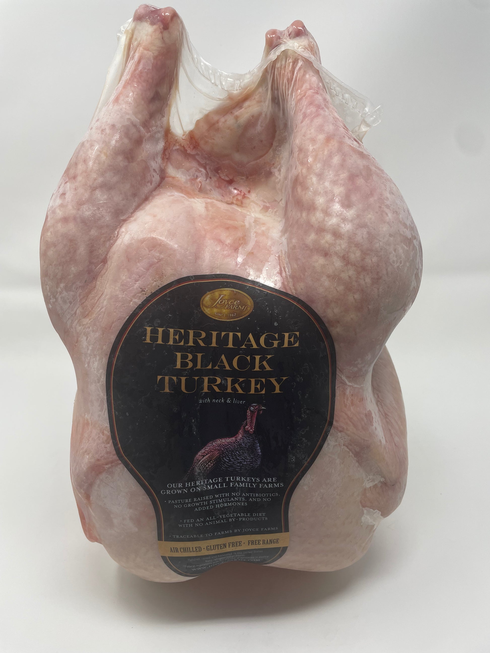 1 WHOLE JOYCE FARMS HERITAGE BLACK TURKEY is delivered frozen